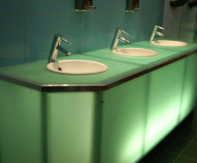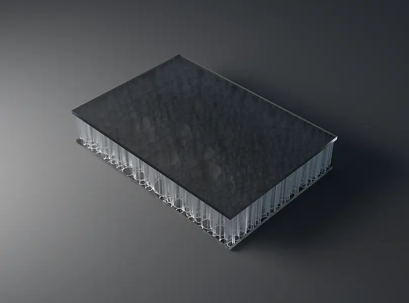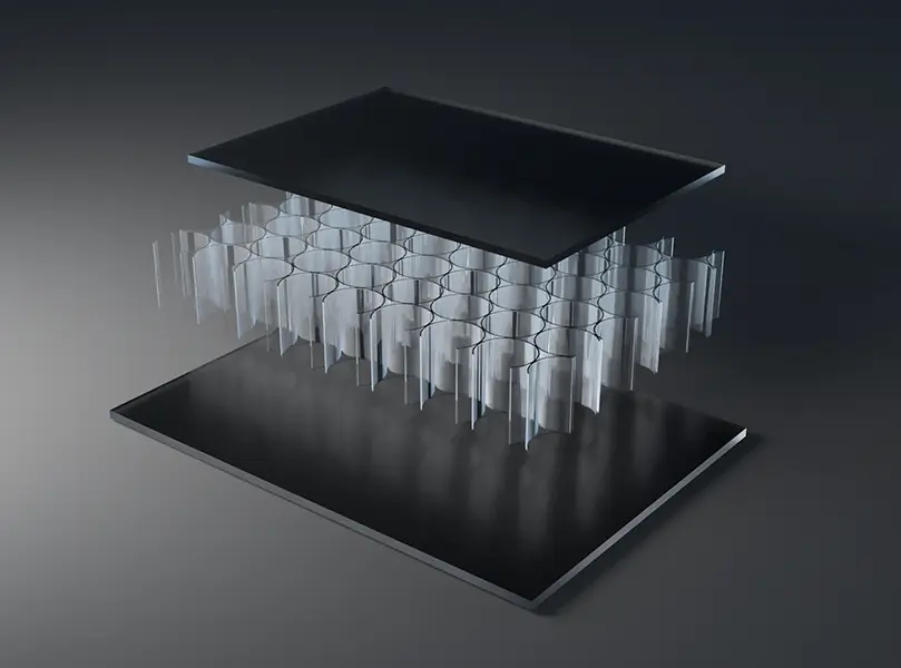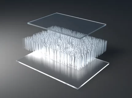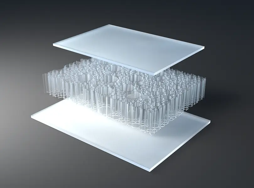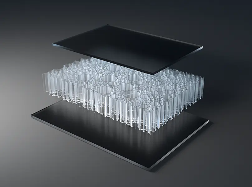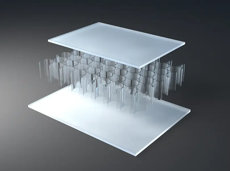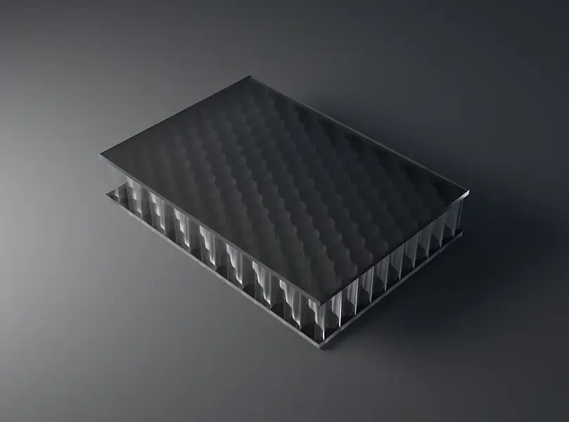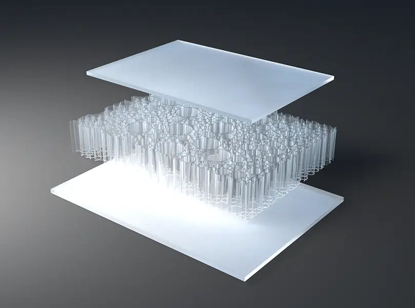 AIR-board® ECO satin panels are made with three polycarbonate (PC) core options and colored, satin-textured PMMA facing sheets. Facings are made with 100% recycled PMMA (R-MMA) and has the same excellent properties of standard PMMA made with a synthetic monomer and is 100% recyclable. These lightweight panels combined with different core options can be used in many different ways in interior architecture to suit the needs of your design. Visit the Resources section for edge finishing and other options.
