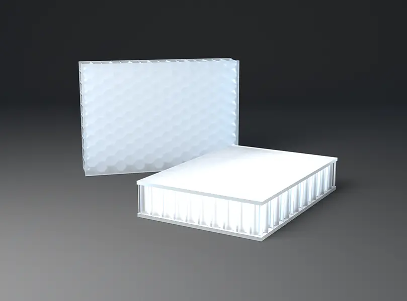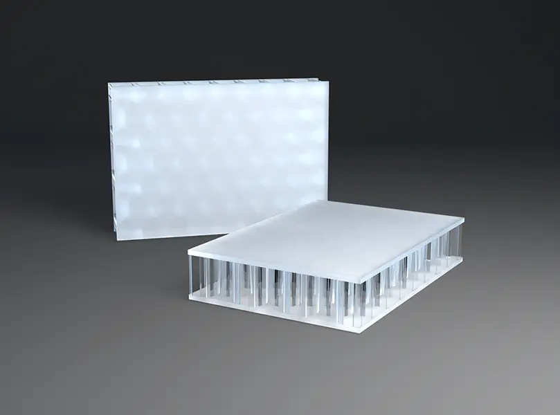 | AIR-board® ECO satin opal white | 7.5 x 10-5 | -30 to +80 / -22 to 176 | 3mm PMMA | 27% |
