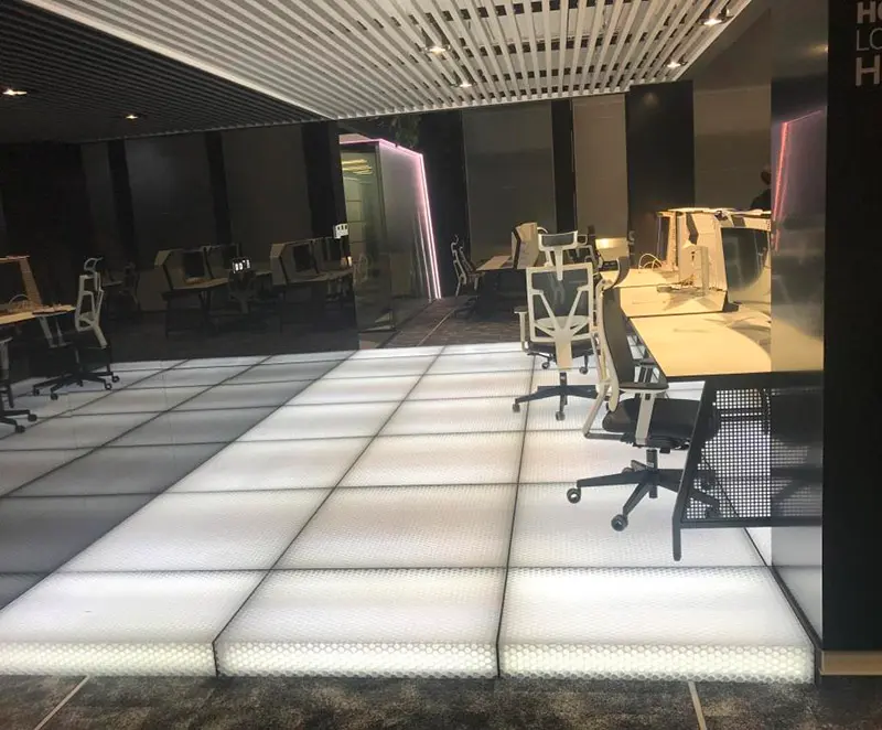 Particularly suitable as a backlit floor panel (also for stages, platforms, exhibition floors) or as a walkable cover.